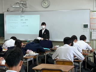 今日の授業☆2年生英語科6月10日 公開日 2024/06/10 更新日 2024/06/10 お知らせ 教育実習生の授業でした☆ 写真は、新出単語の発音練習の様子です。生徒たちは、元気な声で発音していました♪ いいね(0)