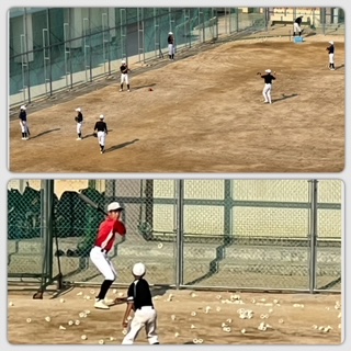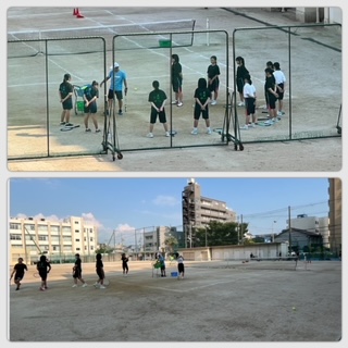 運動場では、硬式テニス部と軟式野球部が活動しています☆