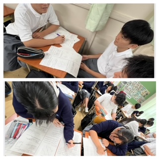 分からないところは互いに質問しながら百点満点を目指していました♪
