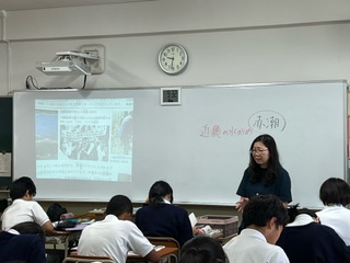 琵琶湖の水を守る取り組みにはどんなものがあるのか?またなぜ琵琶湖の水質を保全することが重要なのか?生徒たちの考えをもとに授業が展開されていました♪