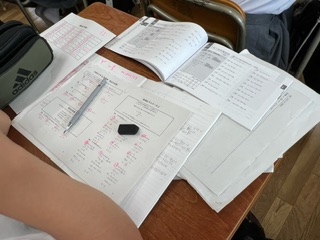 解き方の基本である「文字の項を左辺に、数字の項を右辺に移項し両辺を整理する」を、繰り返し練習しました♪家でも練習しておきましょう!