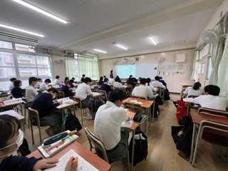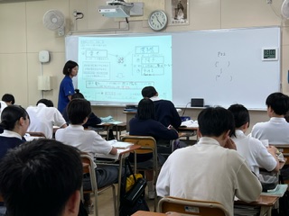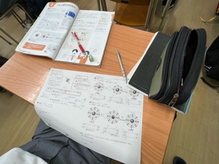写真は、原子の成り立ちを学習しているところです。なぜ原子によって陽イオンになったり陰イオンになったりするのか?学びました♪