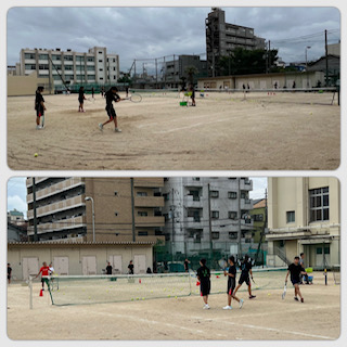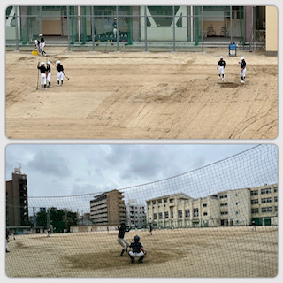 運動場では、軟式野球部と硬式テニス部が活動しています☆