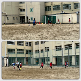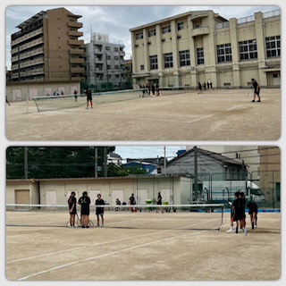 運動場ではサッカー部と硬式テニス部が活動しています☆