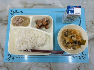【さけのしょうゆ風味焼き みそ汁 焼きのり とうがんの煮もの 米飯 牛乳】