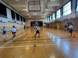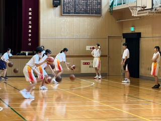 体育館では、女子バスケットボール部が活動しています☆