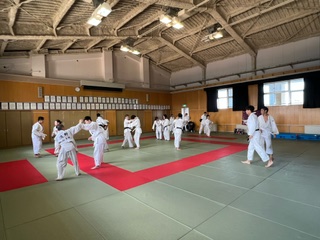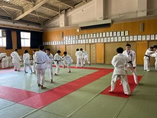 格技室では柔道部が活動しています☆今日は卒業生が後輩の指導に来てくれました♪