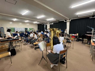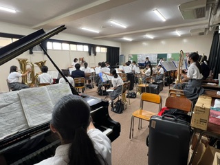 音楽室では、吹奏楽部が中地区大会に向け、気合いを入れて練習しています☆