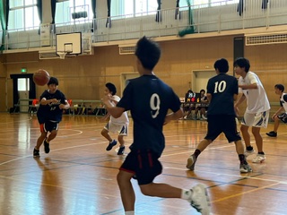 体育館では、男子バスケットボール部が練習試合をしています☆