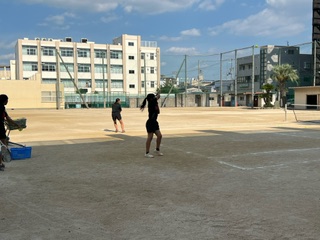 運動場では硬式テニス部が活動しています☆