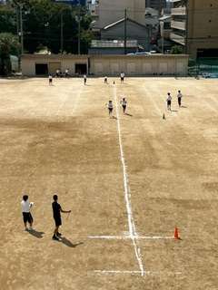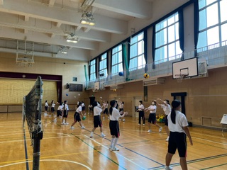 男子は運動場で50mの記録測定を、女子は体育館でバレーボールに取り組みました☆