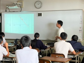関数を学習しました☆ 写真は、一次関数のグラフから関数式を求めているところです♪