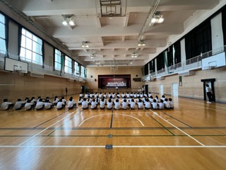 1年生が体育館で合唱コンクールに向け練習をしています☆