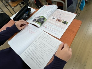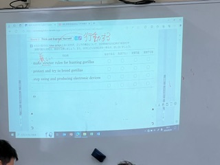 人間の都合によりレッドリストに指定されているコンゴ共和国のゴリラについて調べた英文の報告内容を、教材として学習しました☆