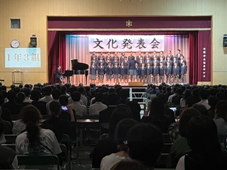 文化発表会☆1年生合唱コンクール10月4日 公開日 2024/10/04 更新日 2024/10/04 お知らせ 最優秀賞1組「夢の世界を」 優秀賞2組「君は君でいい」 優秀賞3組「翼をください」 1年生らしい元気いっぱいの歌声でした。 最優秀賞の1組は、声の大きさだけでなく男女のバランスが素晴らしかったです♪ いいね(0)