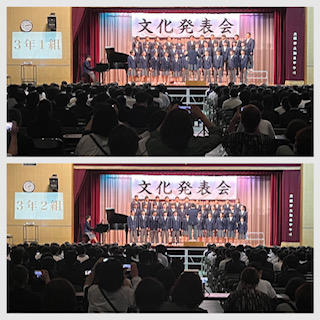 さすが3年生でした!どのクラスも甲乙つけ難い合唱でした。練習の賜物ですね!