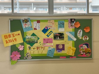 学校元気アップ本部事業の方々と文化委員の皆さんが、新しく入荷した書籍の案内を各校舎に掲示してくれています☆