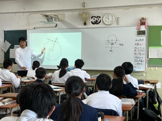 今日の授業☆1年生数学科10月31日 公開日 2024/10/31 更新日 2024/10/31 お知らせ コンパスを使って円の接線の引き方を学びました☆生徒たちは、作図手順を確認したあと、練習問題に取り組み、正確に作図できるよう工夫を重ねていました♪ いいね(0)