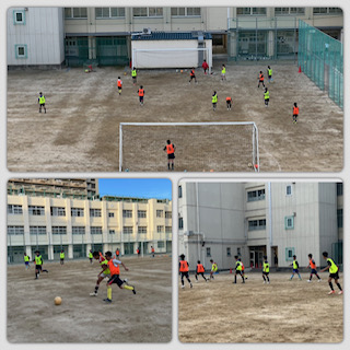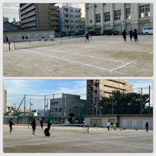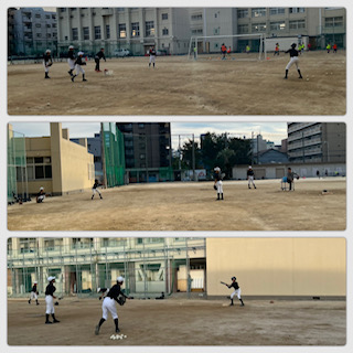 運動場では、軟式野球部と硬式テニス部、サッカー部が活動しています☆