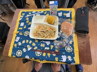 今日の給食☆11月12日 公開日 2024/11/12 更新日 2024/11/12 お知らせ 【ウィンナーときのこの和風スパゲッティ きざみのり 焼きとうもろこし 固形チーズ コッペパン 牛乳】 いいね(0)