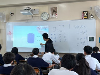 相似比と表面積比・体積比について学習しました☆生徒たちは、動画を活用して立体図形のイメージを膨らませながら、相似な図形の性質を理解し、応用問題に挑戦していました♪