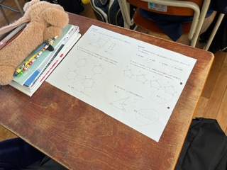 生徒たちは、三角形の内角の和や外角の性質、錯覚、同位角、対頂角など、これまで学んだことをしっかり活用して問題に挑戦していました♪