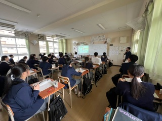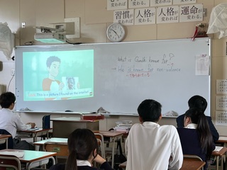 今日の授業☆3年生英語科11月18日 公開日 2024/11/18 更新日 2024/11/18 お知らせ 名詞を修飾する文章について学習しました☆ 「前置詞+語句」「不定詞」「現在分詞」「過去分詞」など、動画も交えながら学習していました♪ いいね(0)
