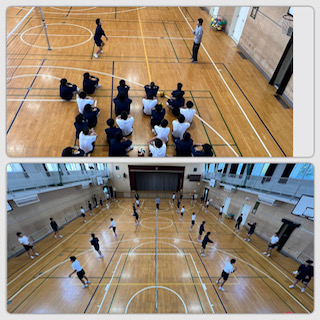 男子は体育館でバレーボールに、女子は運動場で長距離走に取り組みました☆