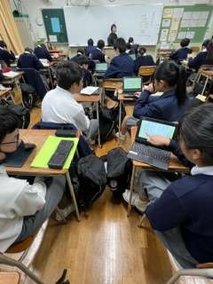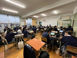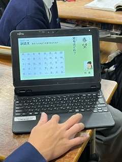 タブレット端末のソフトを活用して漢詩の復習を行いました☆画面を通じて理解を深めるだけでなく、インタラクティブ(生徒とソフトとのやりとり)な学習により、生徒たちは楽しみながら集中して取り組んでいました♪