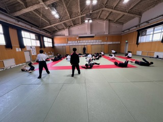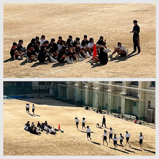 男子は格技室で柔道の前まわり受け身に、女子は運動場で長距離走走に取り組みました♪
