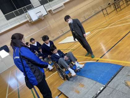 5cmも満たない段差や、わずかな角度の坂でも車いすでの移動の際には大きな障害になり、また介助をする場合でも思ったと通りに車いすを動かすことができず、バリアフリーの大切さを学ぶことができました。