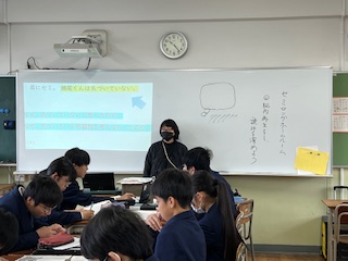 今日の授業☆2年生国語科12月16日 公開日 2024/12/16 更新日 2024/12/16 お知らせ 『セミロングルーム』を学習しました☆ 生徒たちは、内容を整理しつつ、対話を通じて作品の理解を深めていました♪ いいね(0)