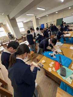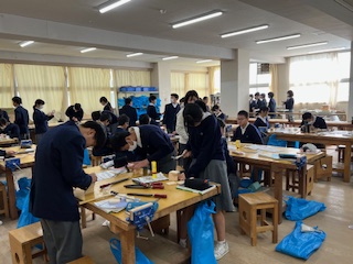 今日の授業☆1年生技術科12月18日 公開日 2024/12/18 更新日 2024/12/18 お知らせ 1年生の技術の授業では、ペン立てを制作しました☆ 生徒たちは採寸を丁寧に行い、クランプを使って板をしっかり固定し、のこぎりで材料を切り出していきます。作業を通して、ものづくりの楽しさだけでなく、技術の見方や考え方も学ぶことができました♪ いいね(0)