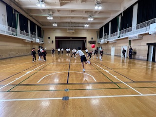 大きなソフトタッチボールを使ってドッジボールを行いました☆ルールを確認した後、チームに分かれてゲームを開始。生徒たちは真剣な表情でプレーしながらも、楽しそうに取り組んでいました♪