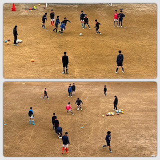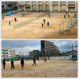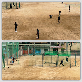 運動場では軟式野球部と硬式テニス部、サッカー部が活動しています☆