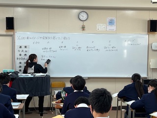 今日の授業☆2年生音楽科1月21日 公開日 2025/01/21 更新日 2025/01/21 お知らせ “Let’s Search for Tomorrow”を聴き、曲のイメージや雰囲気について意見を出し合いました☆ 生徒たちは、それぞれが感じたことを言葉にしながら、曲が持つ魅力やメッセージを深く味わっていました♪ いいね(0)