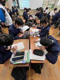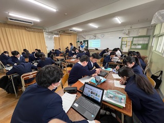 今日の授業☆2年生英語科1月22日 公開日 2025/01/22 更新日 2025/01/22 お知らせ C-NETの先生とティームティーチング形式で英語の授業を行いました☆ 授業では、C-NETの先生から出された英語の質問に対して、生徒たちは班の仲間と協力しながら楽しそうに答えていました。自然に英語に触れる良い機会となりました♪ いいね(0)