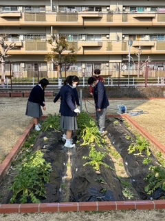大切に育てた大根を収穫しました☆1月24日 公開日 2025/01/24 更新日 2025/01/24 お知らせ チャレンジ学級の生徒たちが中心となって育てた大根を、ついに収穫しました☆毎日一生懸命に水やりや手入れを行い、大切に育ててきた大根が立派に成長し、生徒たちは嬉しそうな笑顔を見せていました。自分たちの手で育てた作物を収穫する経験を通じて、自然の恵みや育てる喜びを実感することができました。このような活動を通じて、生徒たちが自信を持ち、さらなる成長につながることを願っています♪ いいね(0)
