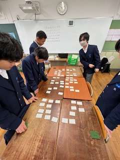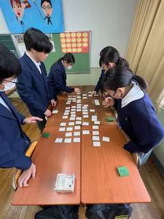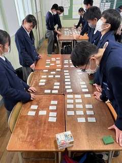 今日の授業☆2年生国語科2月3日 公開日 2025/02/03 更新日 2025/02/03 お知らせ 今週木曜日に控える百人一首大会に向けて、練習を行いました☆生徒たちは気合い十分で、札を取る姿も真剣そのもの。一枚一枚に集中して全力で取り組んでいました♪本番が楽しみですね! いいね(0)