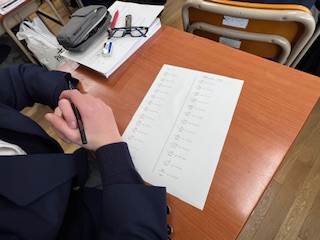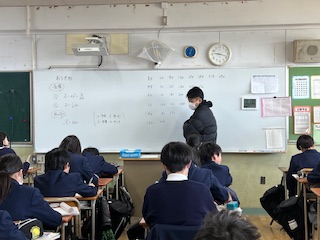 今日の授業☆1年生数学科2月4日 公開日 2025/02/04 更新日 2025/02/04 お知らせ 写真は、円周角や孤の長さ扇形の面積を求める際によく使う、分数の計算を簡単にするための練習を行っているところです☆ 生徒たちは、計算をスムーズに進めるために、分数の約分や基本的な計算方法を確認しながら取り組んでいました♪ いいね(0)