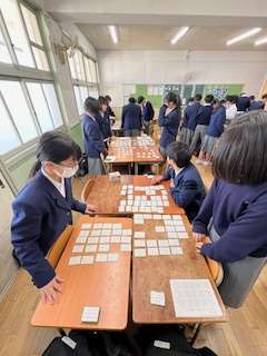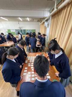 今日の授業☆1年生国語科2月10日 公開日 2025/02/10 更新日 2025/02/10 お知らせ 今日の午後実施される百人一首大会の予行演習の様子です☆本番を控え、生徒たちは、真剣な表情で札を取っていました♪ いいね(0)