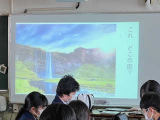 今回の授業では、先生から提示された滝の写真が「どこの国のものか」を調べる活動に取り組みました。生徒たちはタブレット端末を活用し、さまざまなキーワードを入力しながら情報を検索。どのような言葉を使えば正しい情報にたどり着けるのか、試行錯誤しながら探究を進めました。