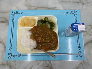 【チキンカレーライス きゅうりのコーンサラダ