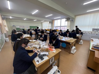 今日の授業☆3年生家庭科2月17日 公開日 2025/02/17 更新日 2025/02/17 お知らせ テディベアの仕上げ作業に取り組みました☆どの生徒もまもなく完成を迎え、それぞれの個性が光る素敵な作品が出来上がりそうです。最後の仕上げにこだわりながら、一針一針丁寧に作業を進めていました。 完成がとても楽しみです♪ いいね(0)
