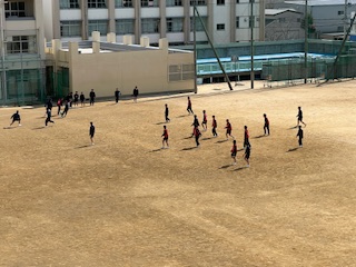 男子は運動場でサッカーに、女子は体育館でバドミントンに取り組みました☆