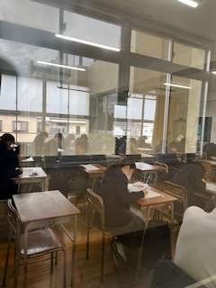 今日も生徒たちは、一つひとつの問いに真剣に取り組んでいます。静かな空間の中、鉛筆の音だけが響き、これまでの学びの成果を発揮しようとする意気込みが感じられます♪