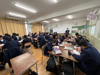 今日の授業☆2年生英語科3月4日 公開日 2025/03/04 更新日 2025/03/04 お知らせ 問題プリントを使って、to不定詞の復習に取り組みました☆ 班の仲間と意見を交わしながら、協力して問題を解いていきました♪ いいね(0)
