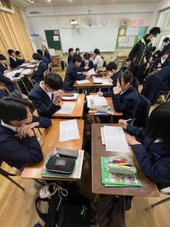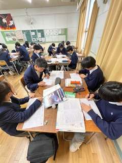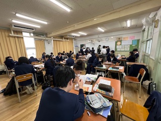 今日の授業☆2年生英語科3月5日 公開日 2025/03/05 更新日 2025/03/05 お知らせ 問題プリントを使い、to不定詞の復習に取り組みました☆ リーダーを中心に、班の仲間と意見を交わしながら協力して問題を解いていきました♪ いいね(0)