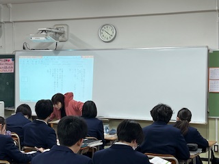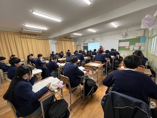 今日の授業☆2年生国語科3月5日 公開日 2025/03/05 更新日 2025/03/05 お知らせ 『壁に残された伝言』の学習が始まりました☆ この単元では、言葉の持つ力や、伝えることの大切さについて考えていきます。生徒たちは、残された「伝言」に込められた思いや背景を読み取りながら、言葉がどのように相手に伝わるのかを学び、相手の気持ちを正しく受け取ることや自分の思いを伝えることの大切さを考えていきます♪ いいね(0)