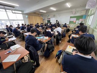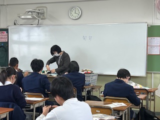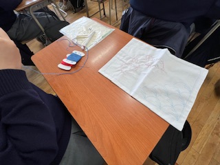 テディベアの製作に取り組みました。写真は、下絵に沿って、糸を縫っている様子です。完成が楽しみですね!